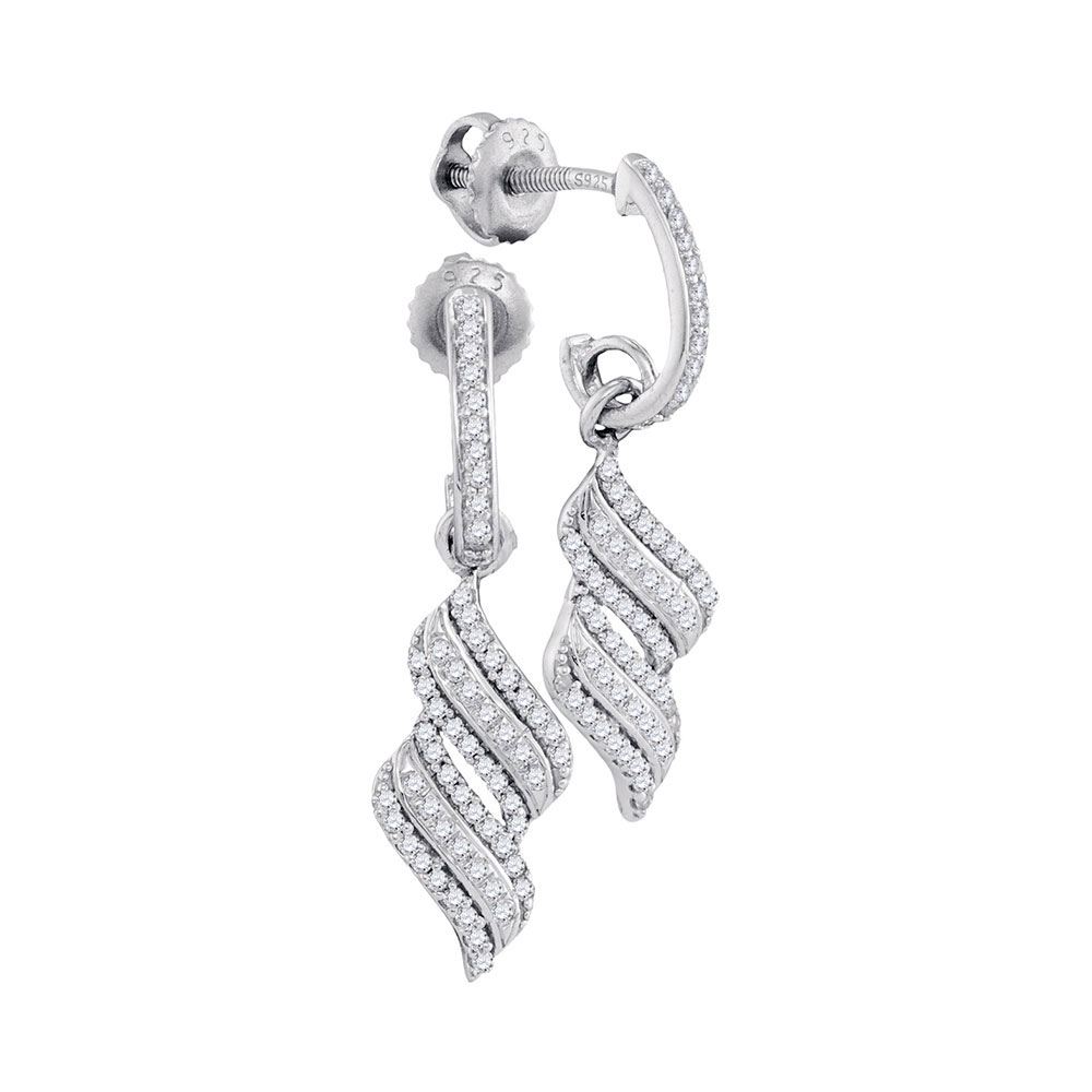 REF-27X3Y - SKU: GD98323 ---- Diamond Cascade Ribbon Dangle Earrings 1/3 Cttw 10kt White Gold