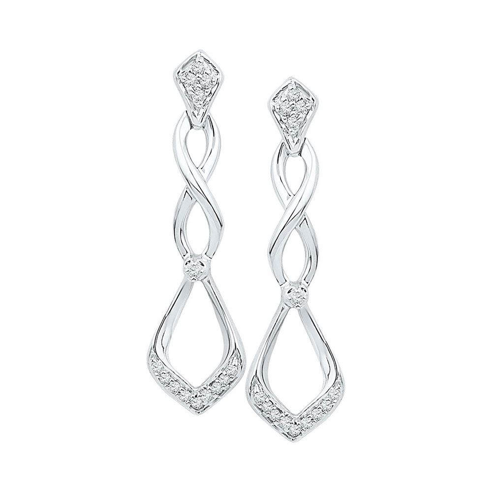 10kt White Gold Womens Round Diamond Cascading Teardrop Dangle Earrings 1/10 Cttw