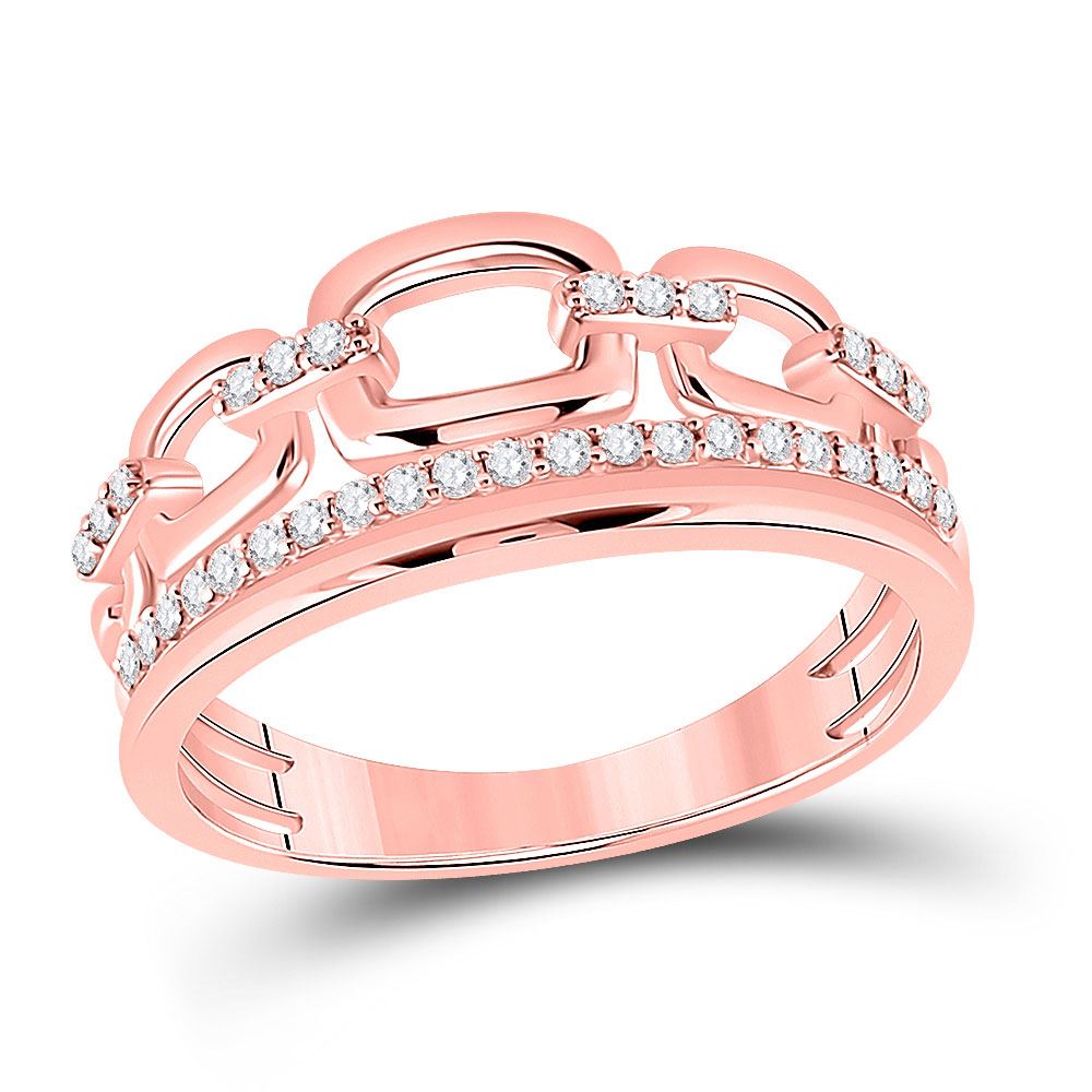 14kt Rose Gold Womens Round Diamond Chain Link Fashion Ring 1/4 Cttw