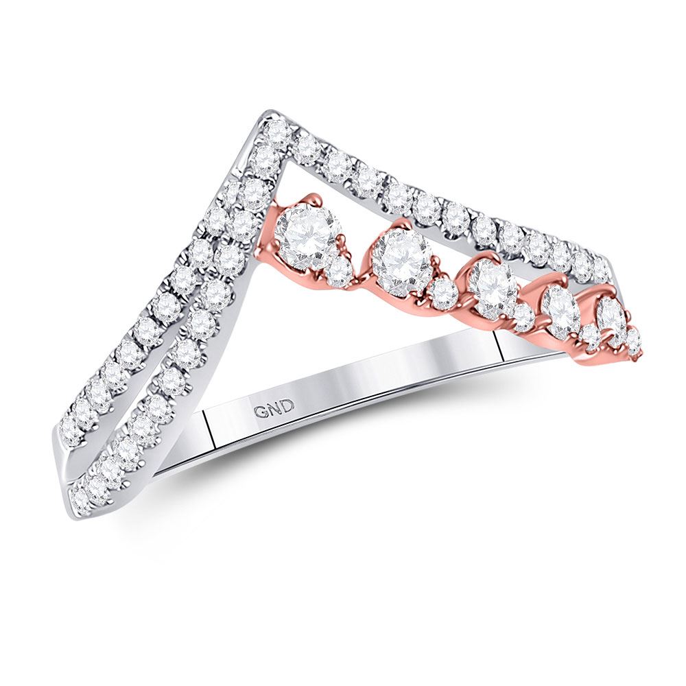 14kt Two-tone Gold Womens Round Diamond Chevron Modern Band Ring 1/2 Cttw