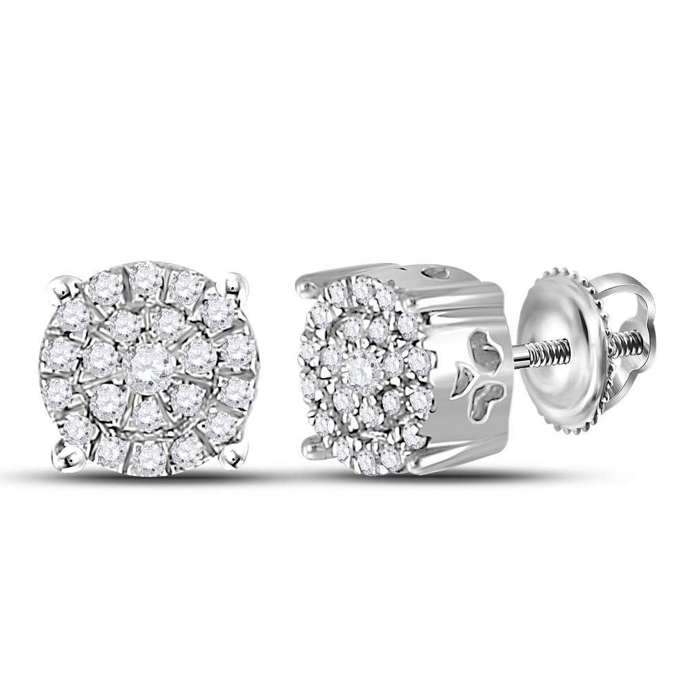 10kt White Gold Womens Round Diamond Cindys Dream Cluster Earrings 1/8 Cttw