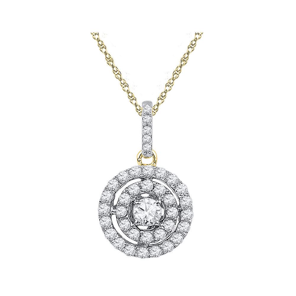 10kt Two-tone Gold Womens Round Diamond Circle Cluster Pendant 1/2 Cttw