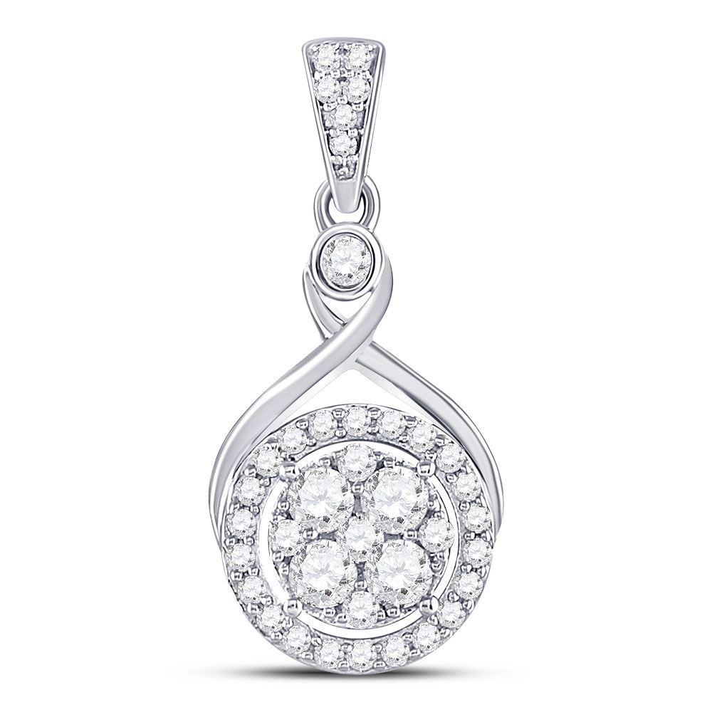10kt White Gold Womens Round Diamond Circle Cluster Pendant 1/2 Cttw