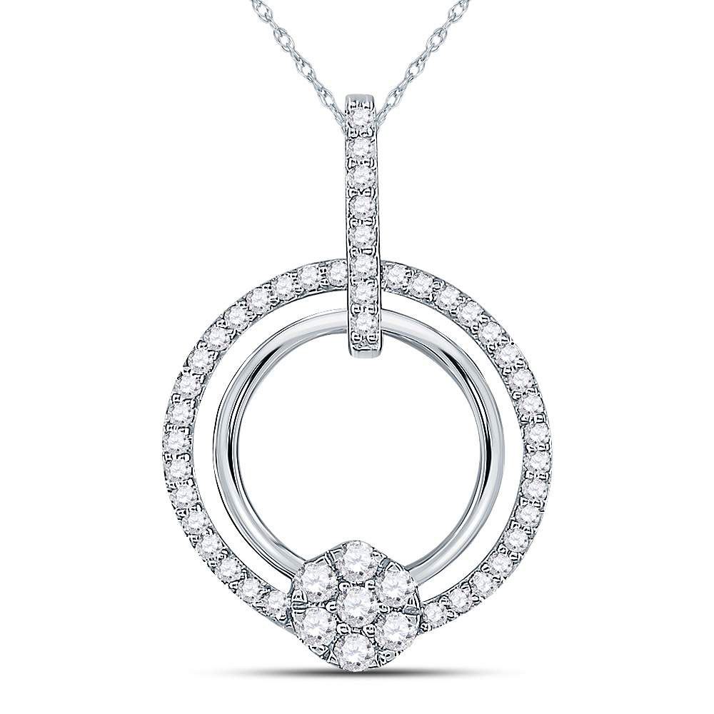 REF-30W9H - SKU: GD119895 ---- Diamond Circle Cluster Pendant 3/8 Cttw 10kt White Gold