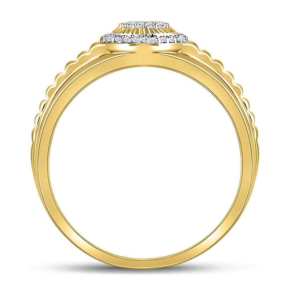 10kt Yellow Gold Womens Round Diamond Circle Cluster Ribbed Ring 1/8 Cttw