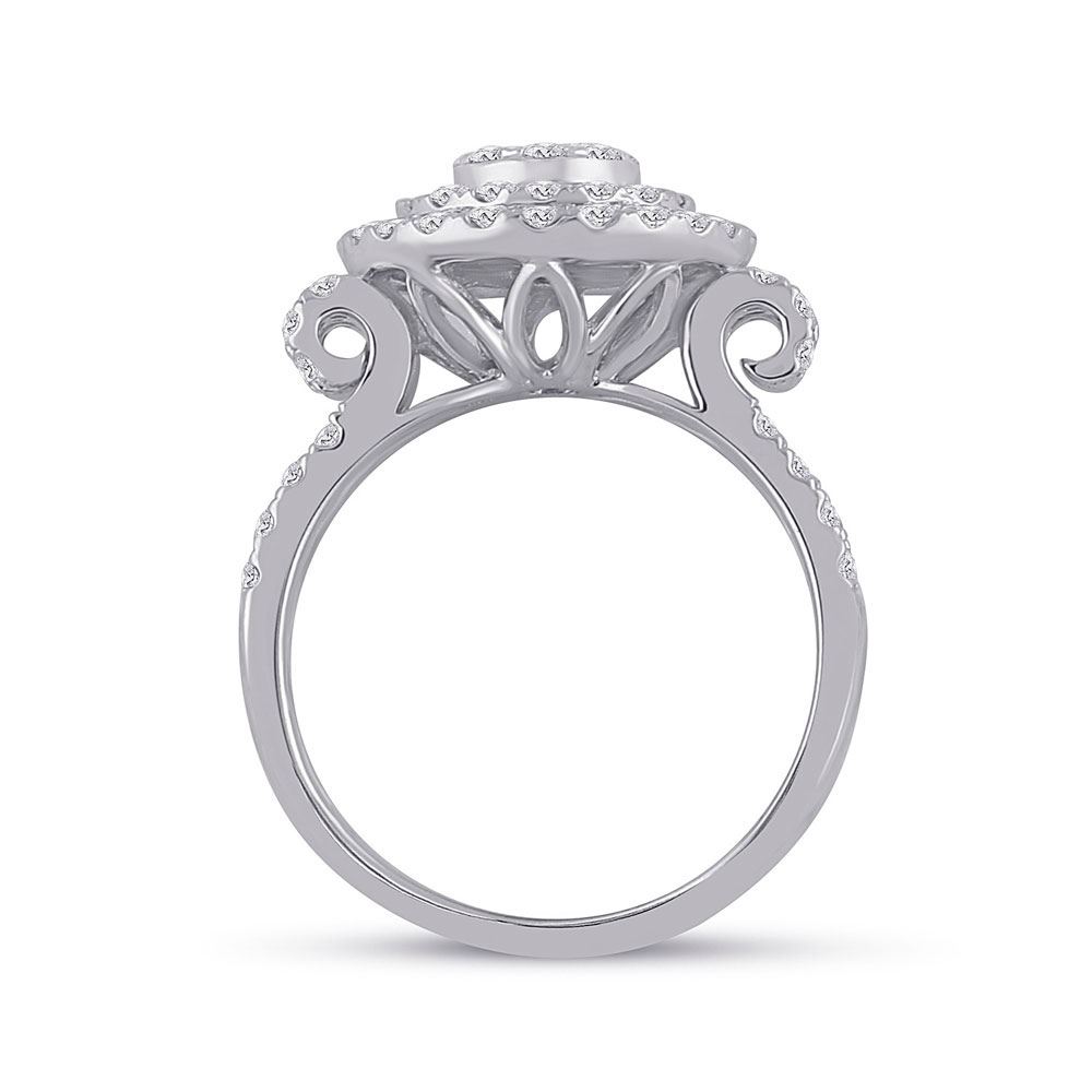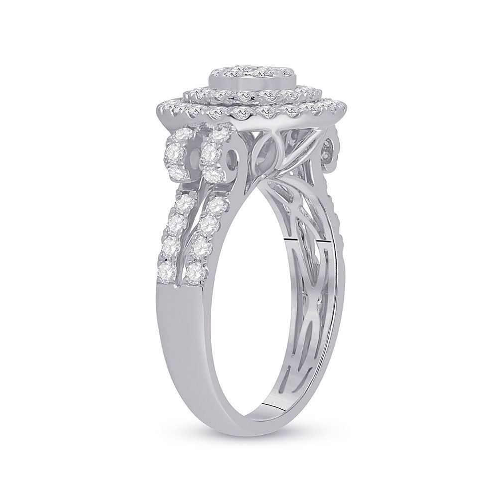14kt White Gold Womens Round Diamond Circle Cluster Ring 1-1/3 Cttw