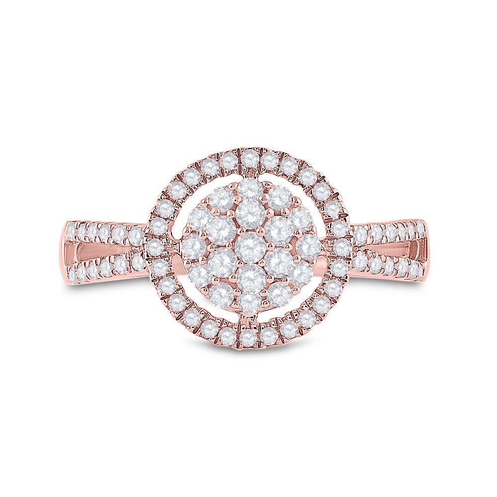 10kt Rose Gold Womens Round Diamond Circle Cluster Ring 1/2 Cttw