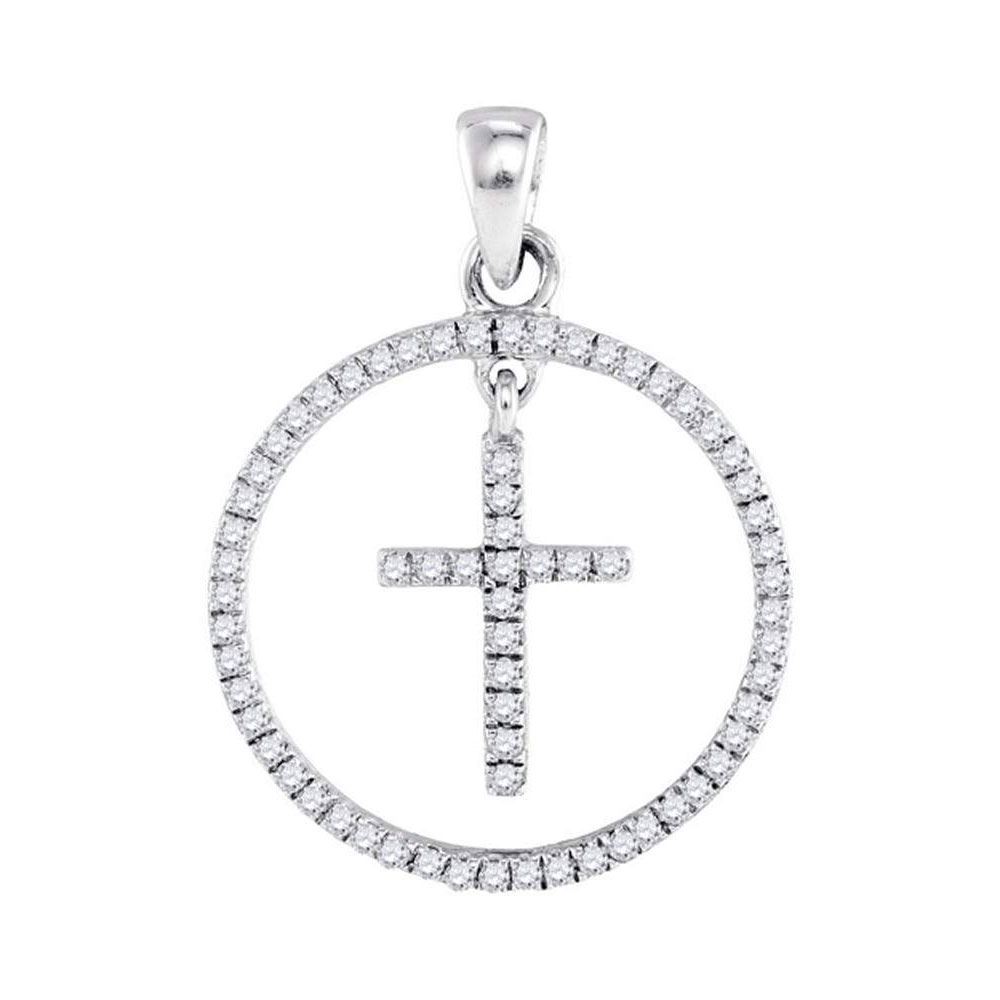 10kt White Gold Womens Round Diamond Circle Cross Pendant 1/4 Cttw