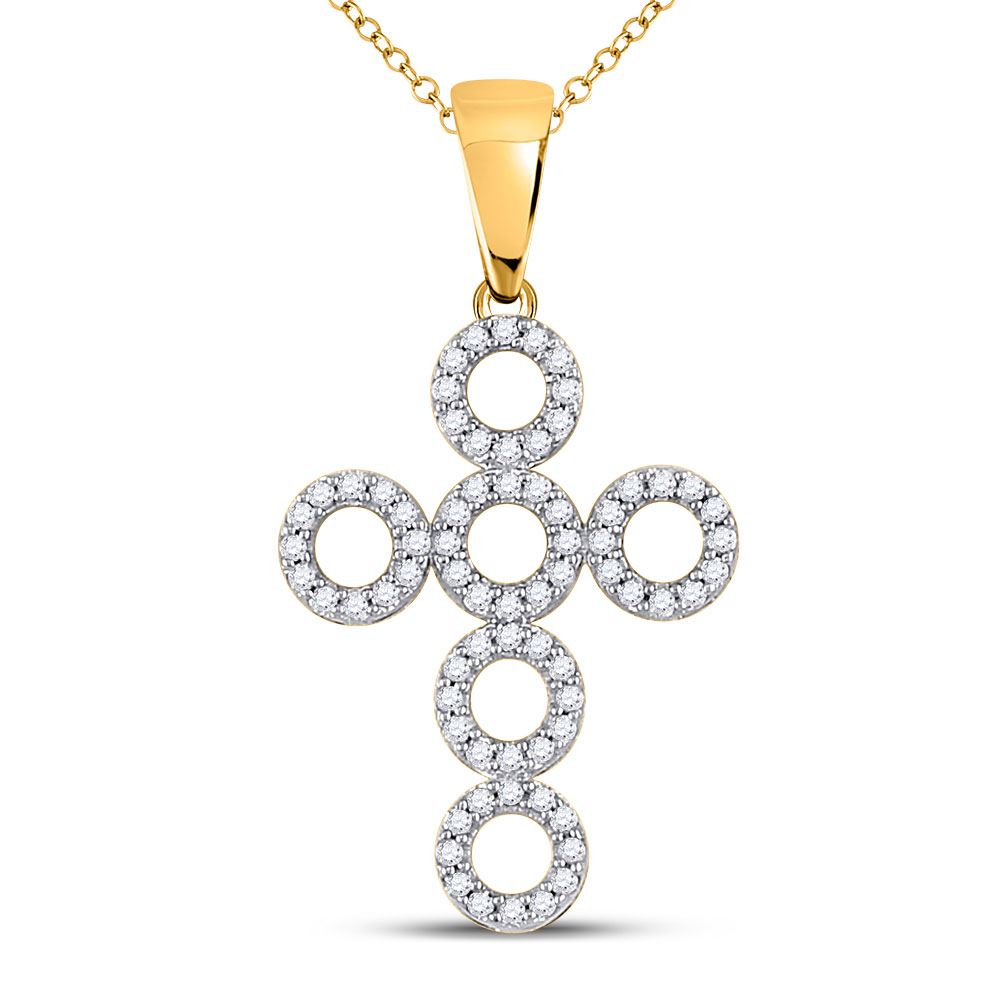 10kt Yellow Gold Womens Round Diamond Circle Cross Pendant 1/5 Cttw
