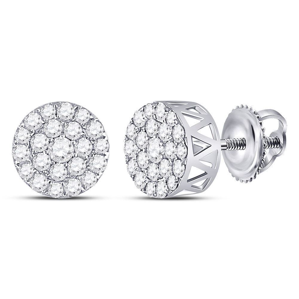 REF-68V2A - SKU: GD120124 ---- Diamond Circle Frame Cluster Earrings 1.00 Cttw 14kt White Gold