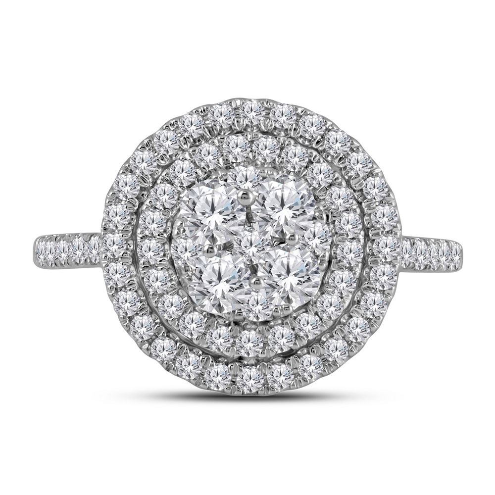 14kt White Gold Womens Round Diamond Circle Halo Cluster Ring 1 Cttw