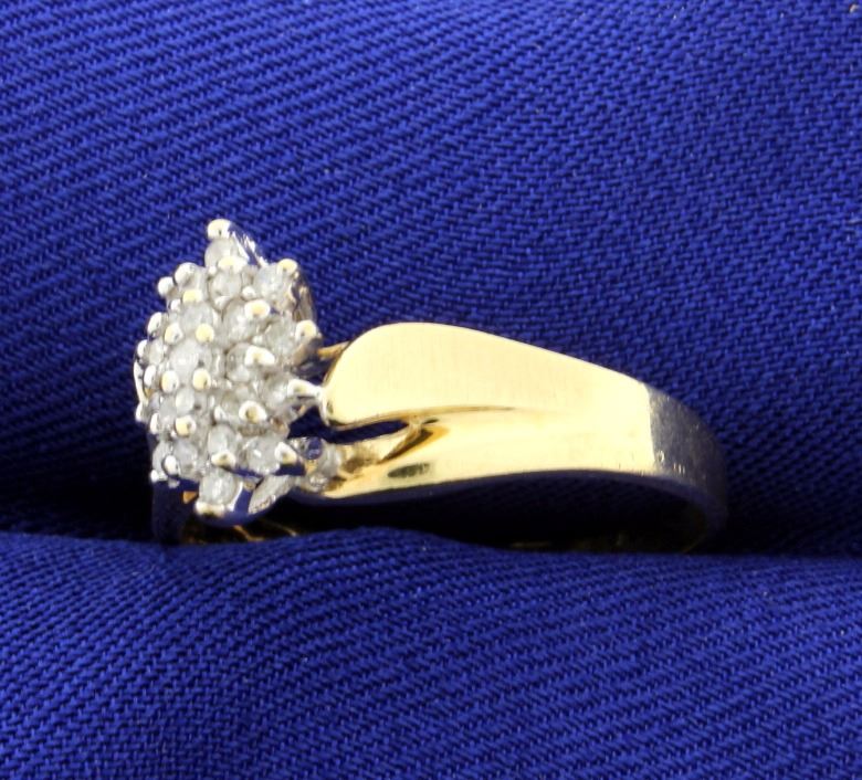There are 1/4 Carats of Brilliant cut diamonds. Clarity I1, color I-J-K. Size 9.5. 2.7g