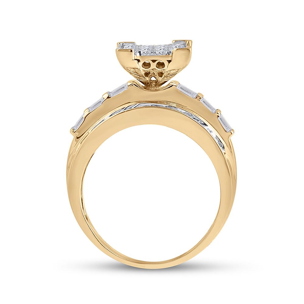 10kt Yellow Gold Round Diamond Cluster Bridal Wedding Engagement Ring 1-1/2 Cttw