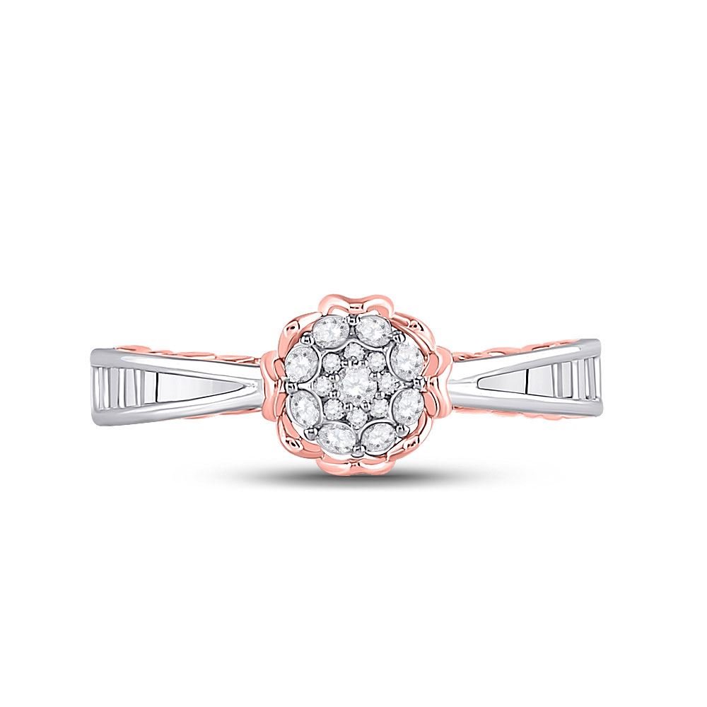 10kt Two-tone Gold Round Diamond Cluster Bridal Wedding Engagement Ring 1/5 Cttw