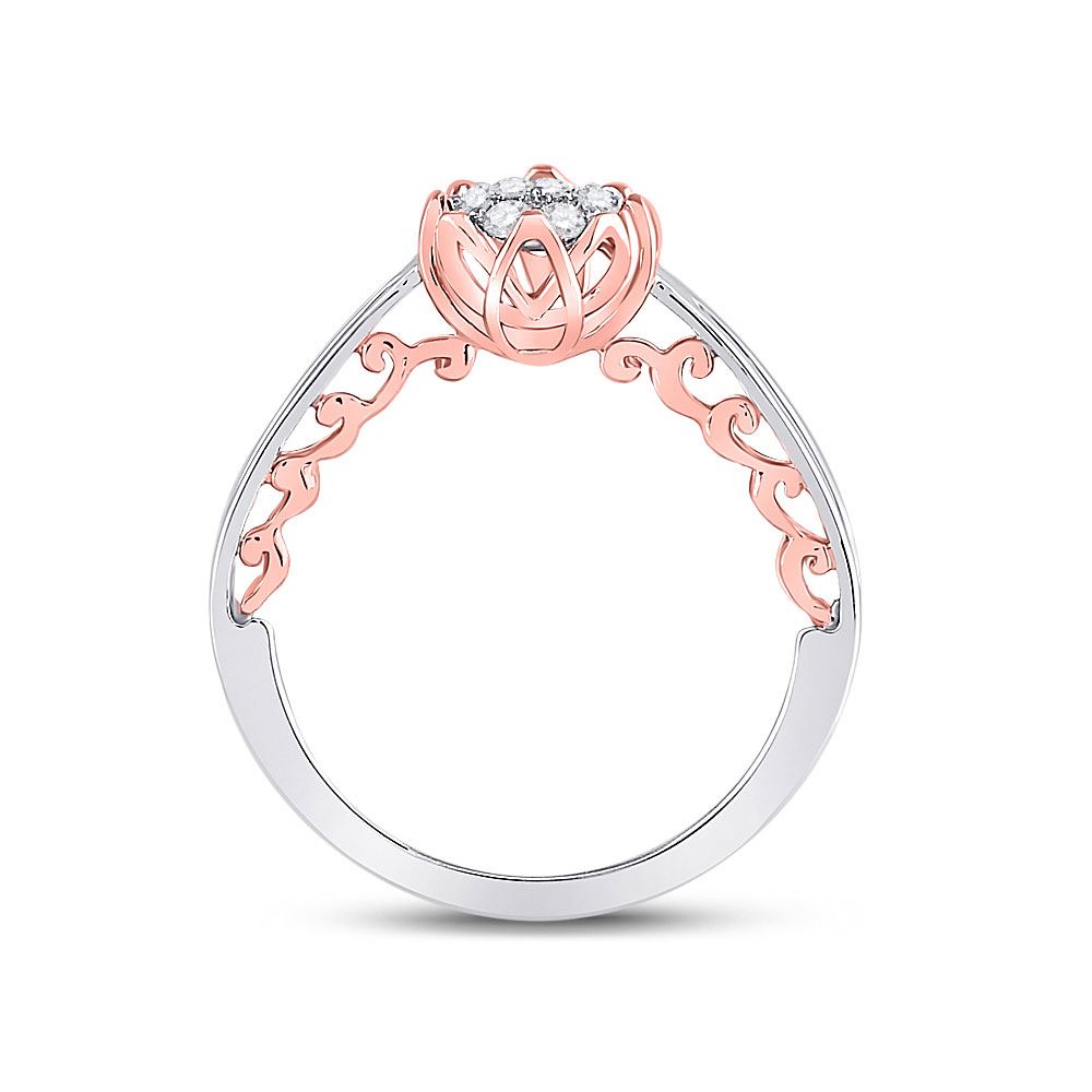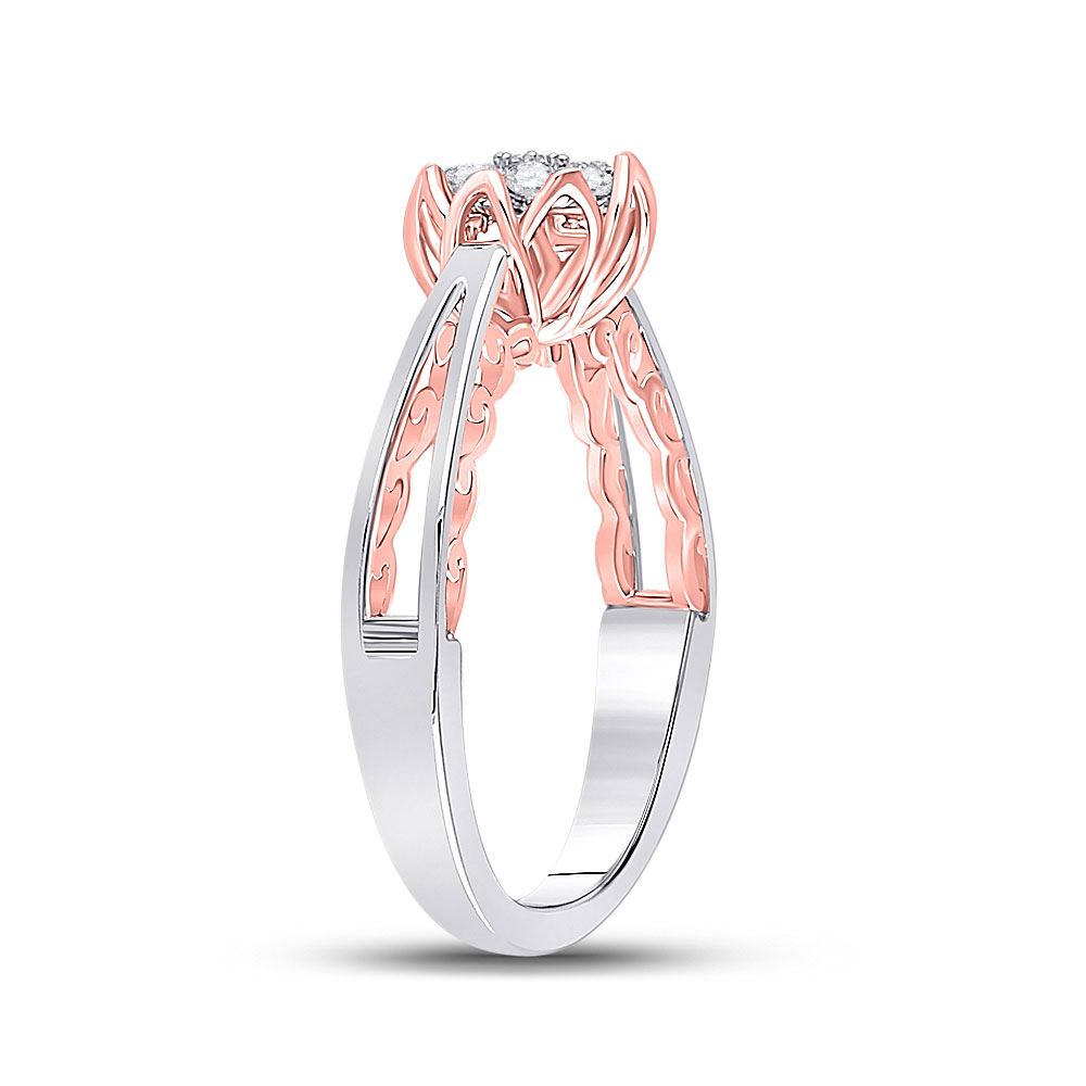 10kt Two-tone Gold Round Diamond Cluster Bridal Wedding Engagement Ring 1/5 Cttw