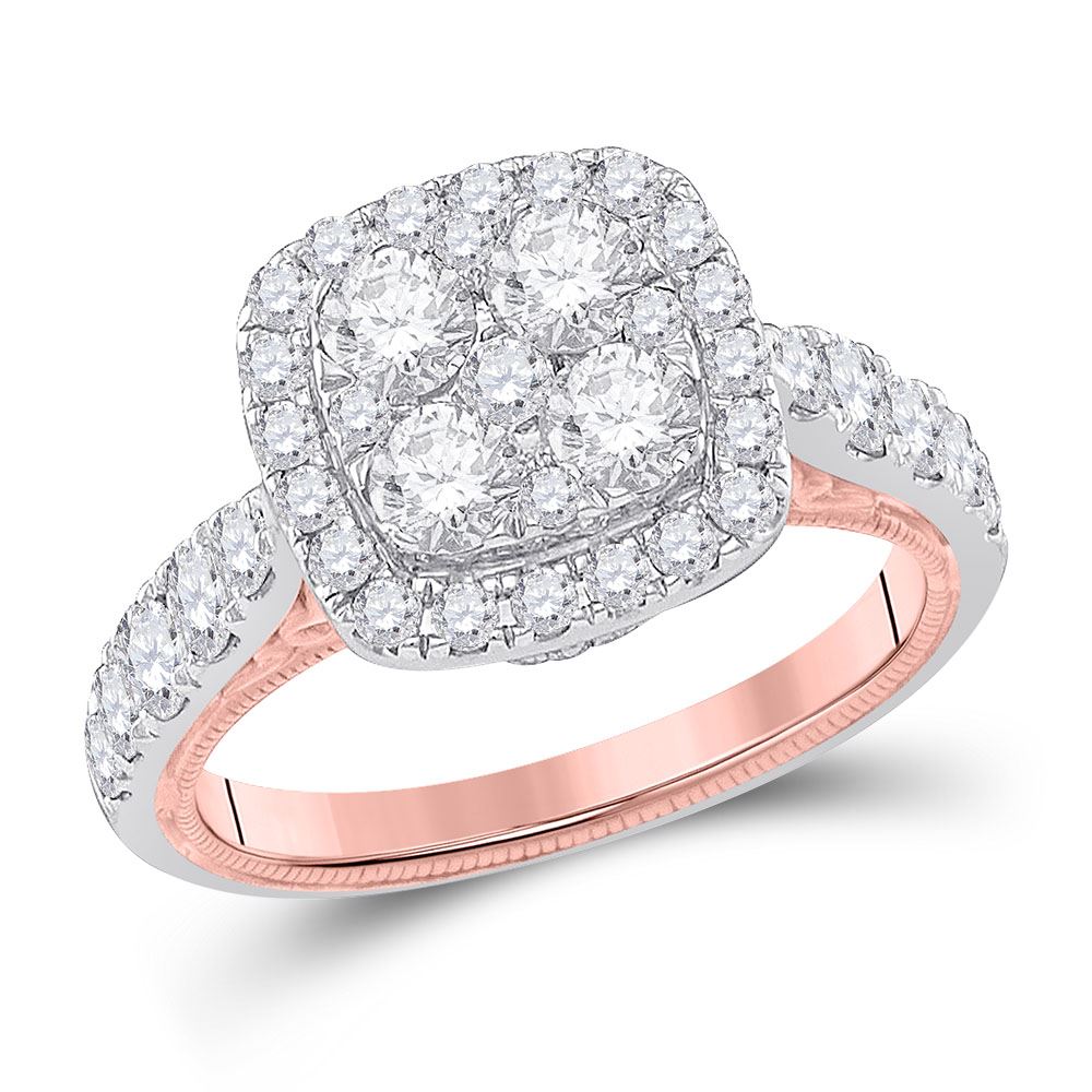14kt Two-tone Gold Round Diamond Cluster Bridal Wedding Engagement Ring 2 Cttw