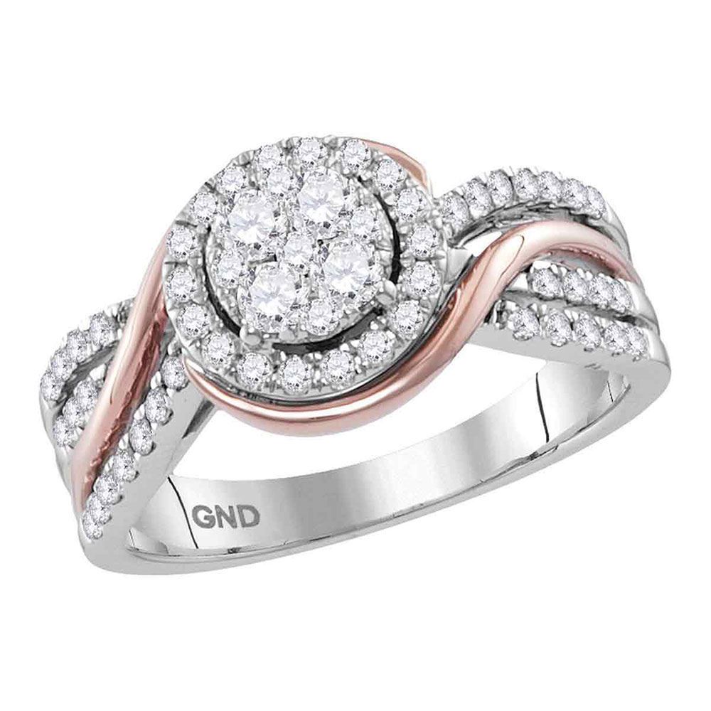 14kt White Rose-tone Gold Round Diamond Cluster Bridal Wedding Engagement Ring 3/4 Cttw