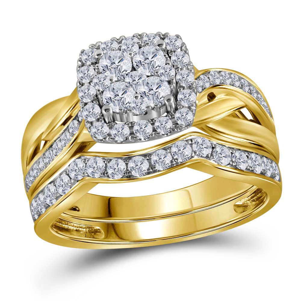 REF-101W8H - SKU: GD116072 ---- Diamond Cluster Bridal Wedding Engagement Ring Band Set 1.00 Cttw 14kt Yellow Gold
