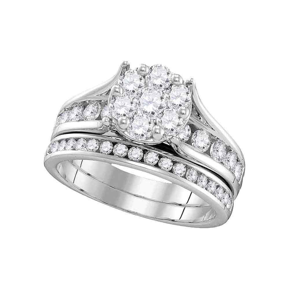 14kt White Gold Round Diamond Cluster Bridal Wedding Ring Band Set 1-1/2 Cttw