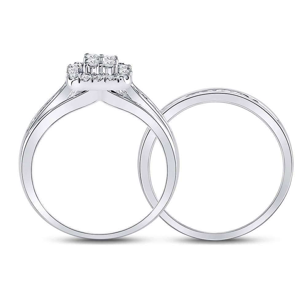10kt White Gold Round Diamond Cluster Bridal Wedding Ring Band Set 1/2 Cttw