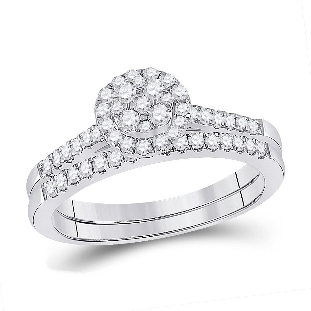 14kt White Gold Round Diamond Cluster Bridal Wedding Ring Band Set 1/2 Cttw