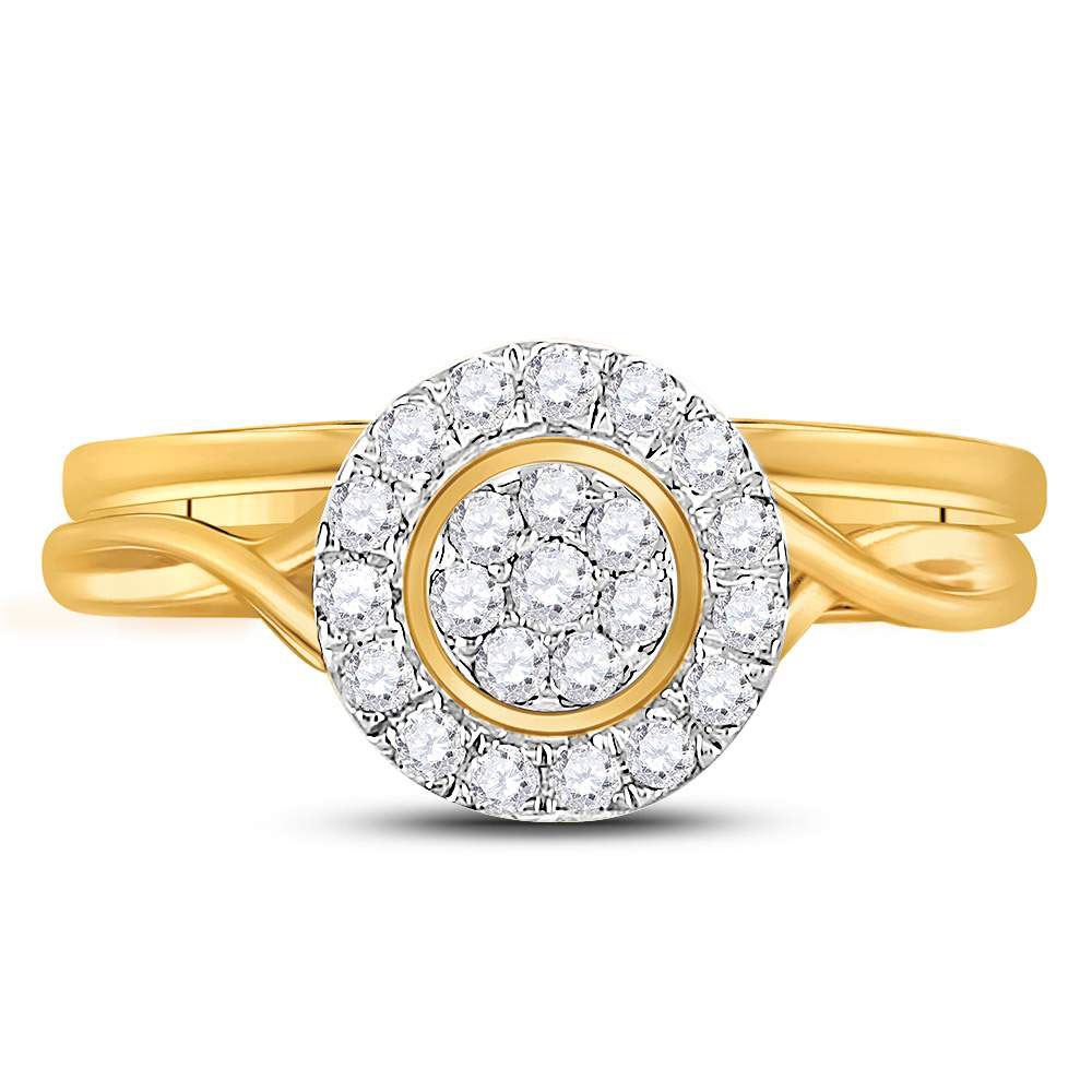 10kt Yellow Gold Round Diamond Cluster Bridal Wedding Ring Band Set 1/3 Cttw.