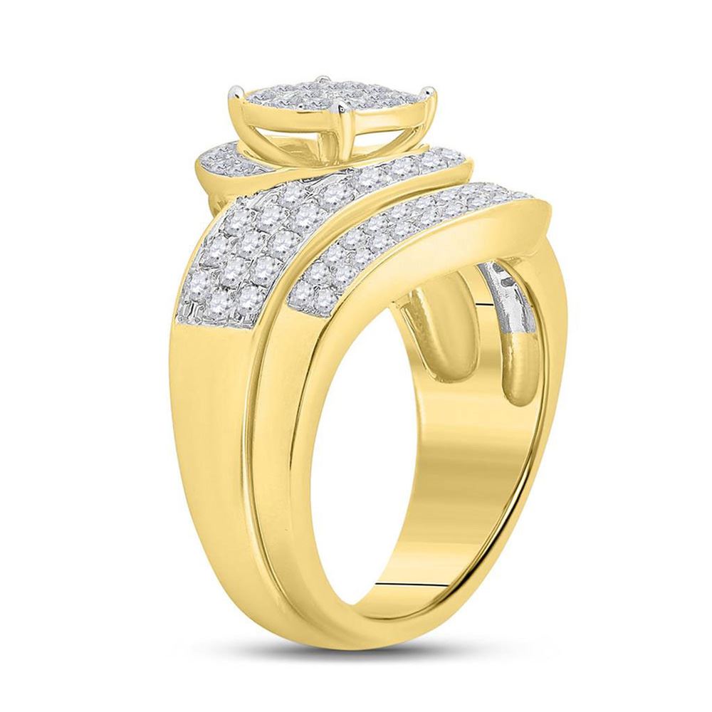 14kt Yellow Gold Round Diamond Cluster Bridal Wedding Ring Band Set 1 Cttw