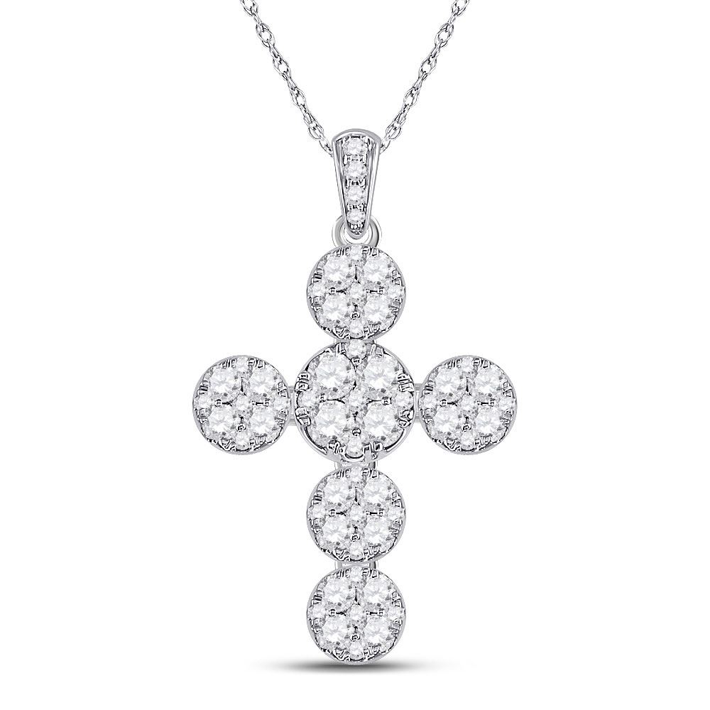 14kt White Gold Womens Round Diamond Cluster Cross Pendant 1-1/3 Cttw