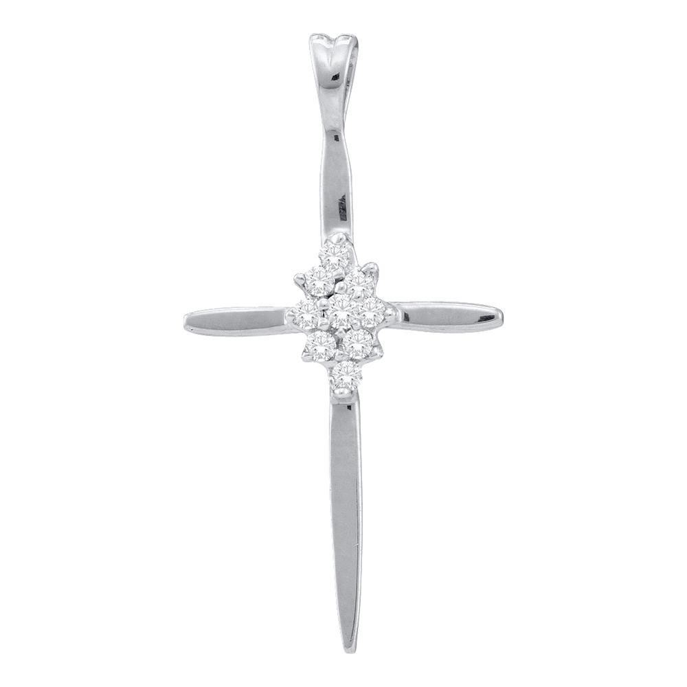 REF-6M4X - SKU: GD15845 ---- Diamond Cluster Cross Pendant 1/12 Cttw 10k White Gold