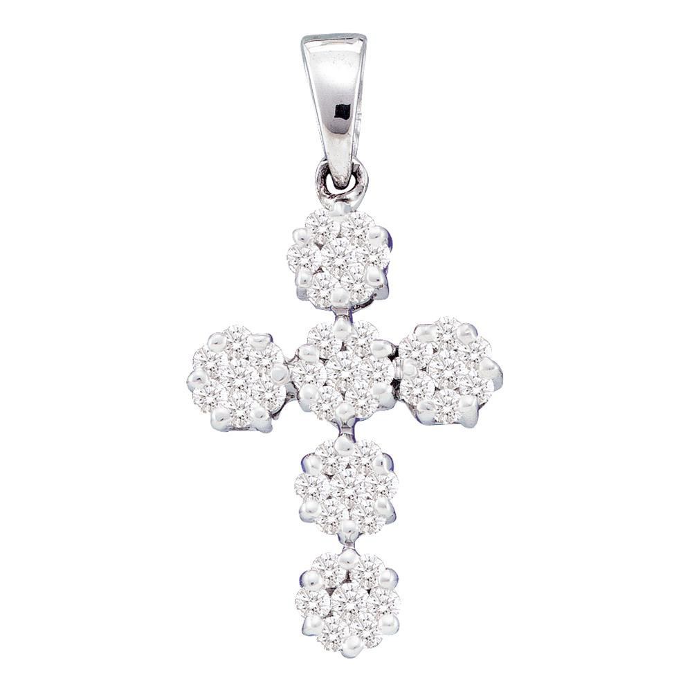 14kt White Gold Womens Round Diamond Cluster Cross Religious Pendant 1/2 Cttw