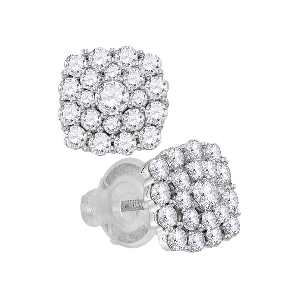 REF-81W8H - SKU: GD115449 ---- Diamond Cluster Earrings 1.00 Cttw 14kt White Gold