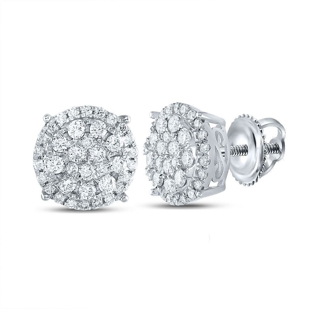 14kt Yellow Gold Womens Round Diamond Cluster Earrings 1-1/4 Cttw