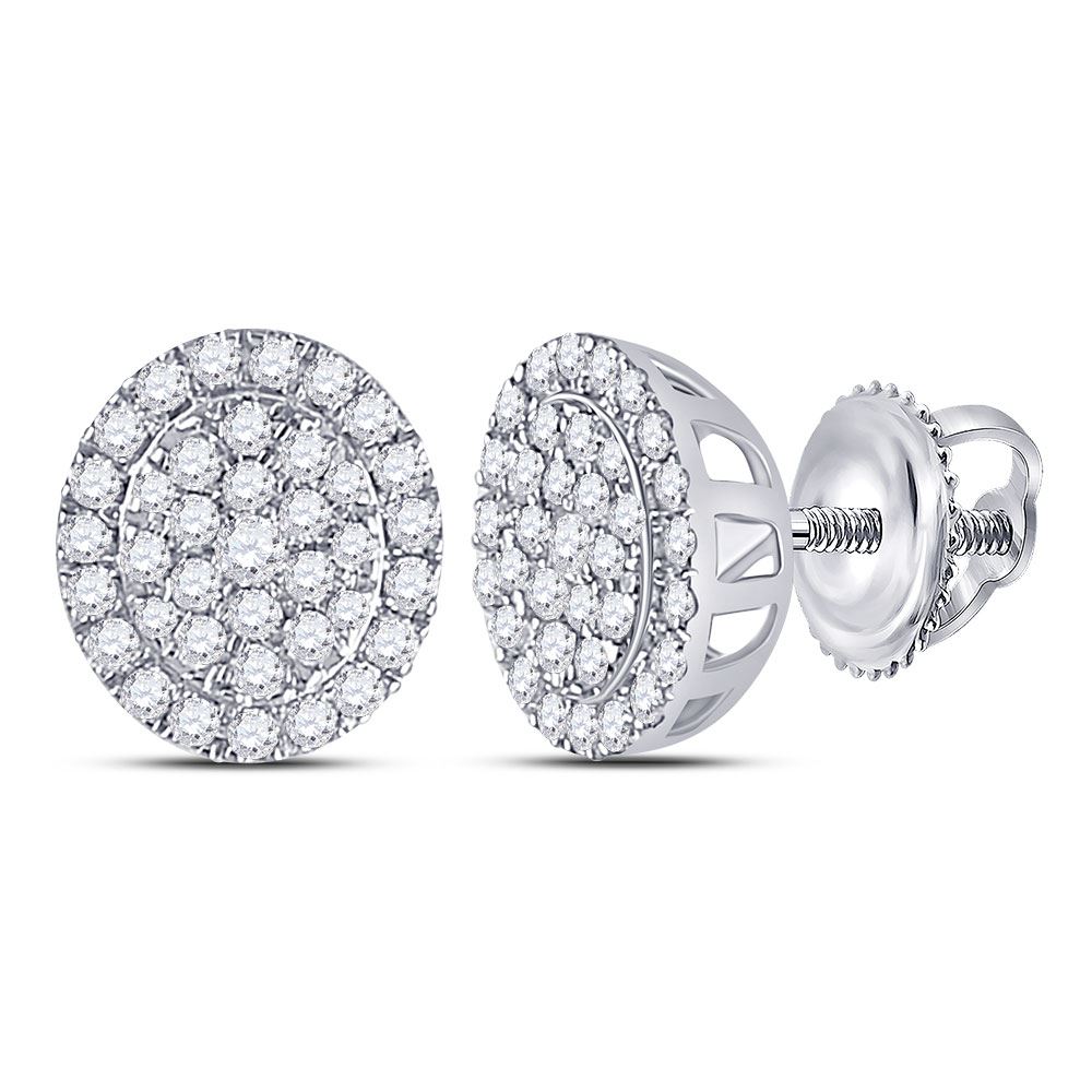 10kt White Gold Womens Round Diamond Cluster Earrings 1/2 Cttw