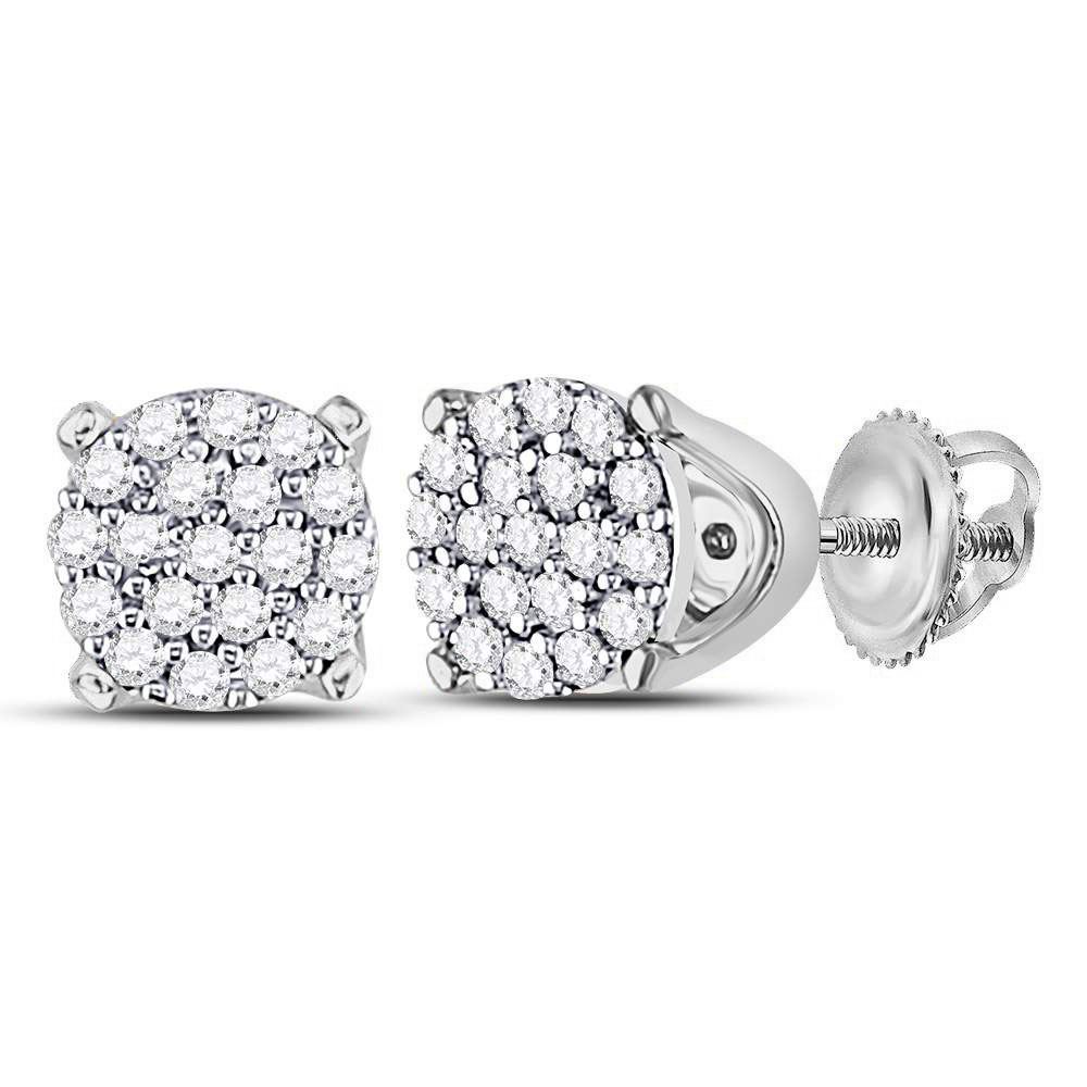 10kt White Gold Womens Round Diamond Cluster Earrings 1/8 Cttw