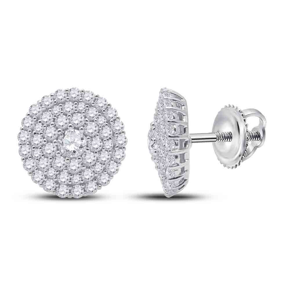 14kt White Gold Womens Round Diamond Cluster Earrings 1 Cttw