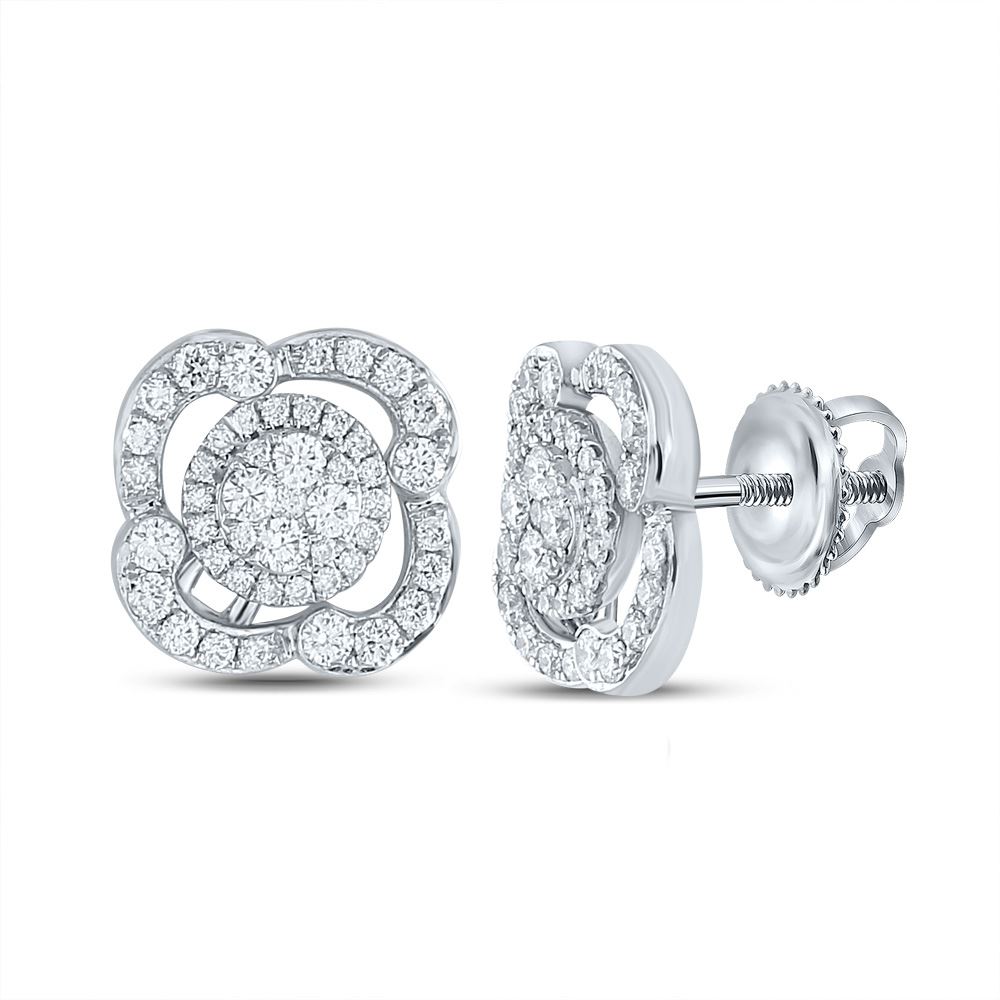 18kt White Gold Womens Round Diamond Cluster Earrings 1 Cttw