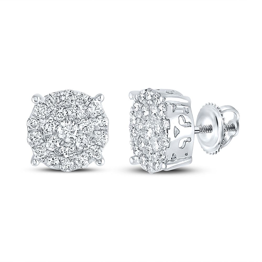 10kt White Gold Womens Round Diamond Cluster Earrings 2 Cttw