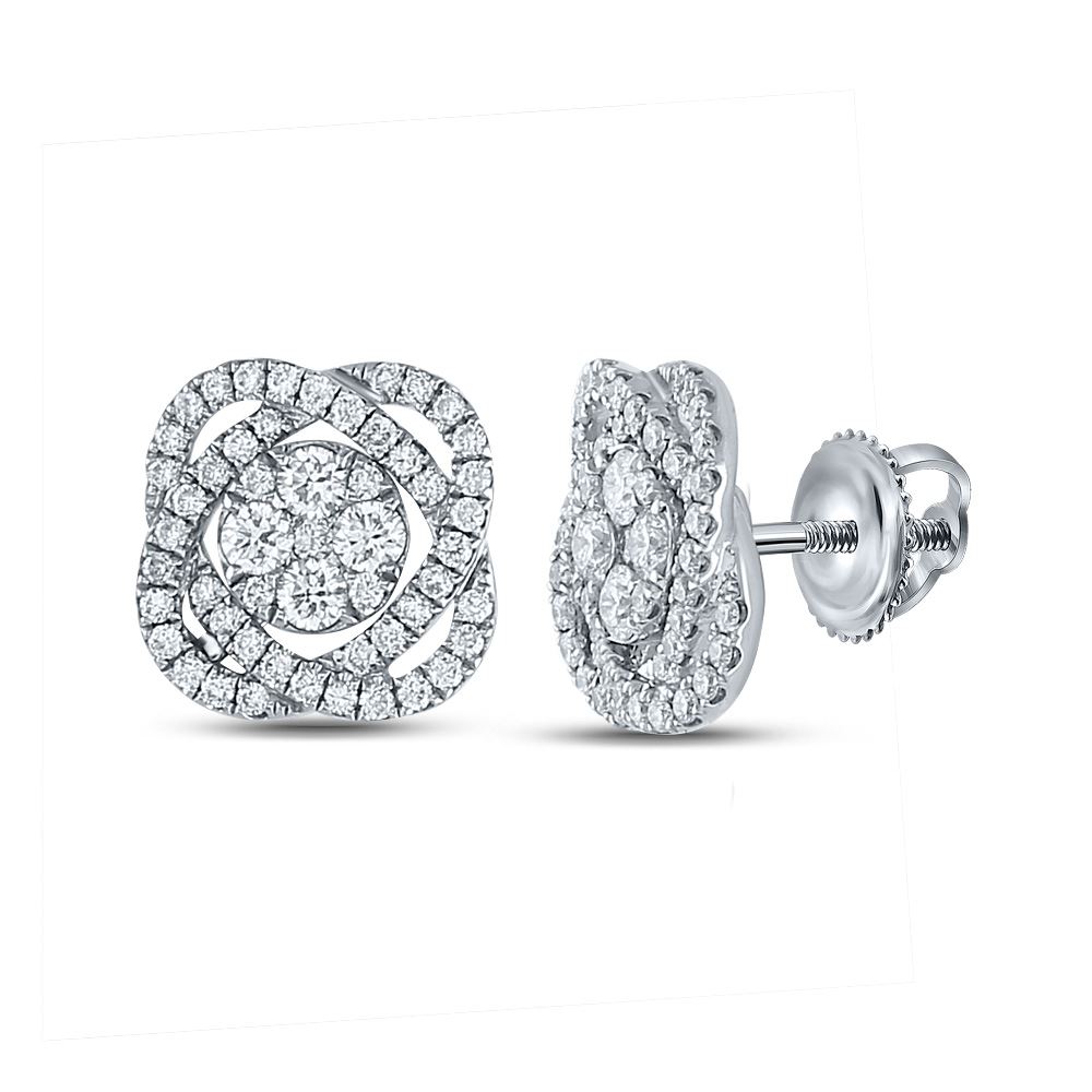 18kt White Gold Womens Round Diamond Cluster Earrings 7/8 Cttw
