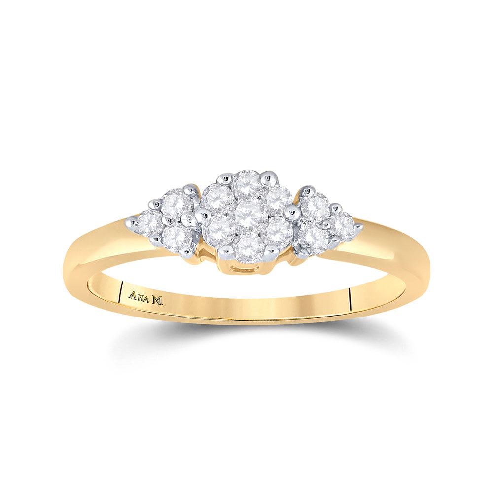 14kt Yellow Gold Womens Round Diamond Cluster Fashion Ring 1/4 Cttw