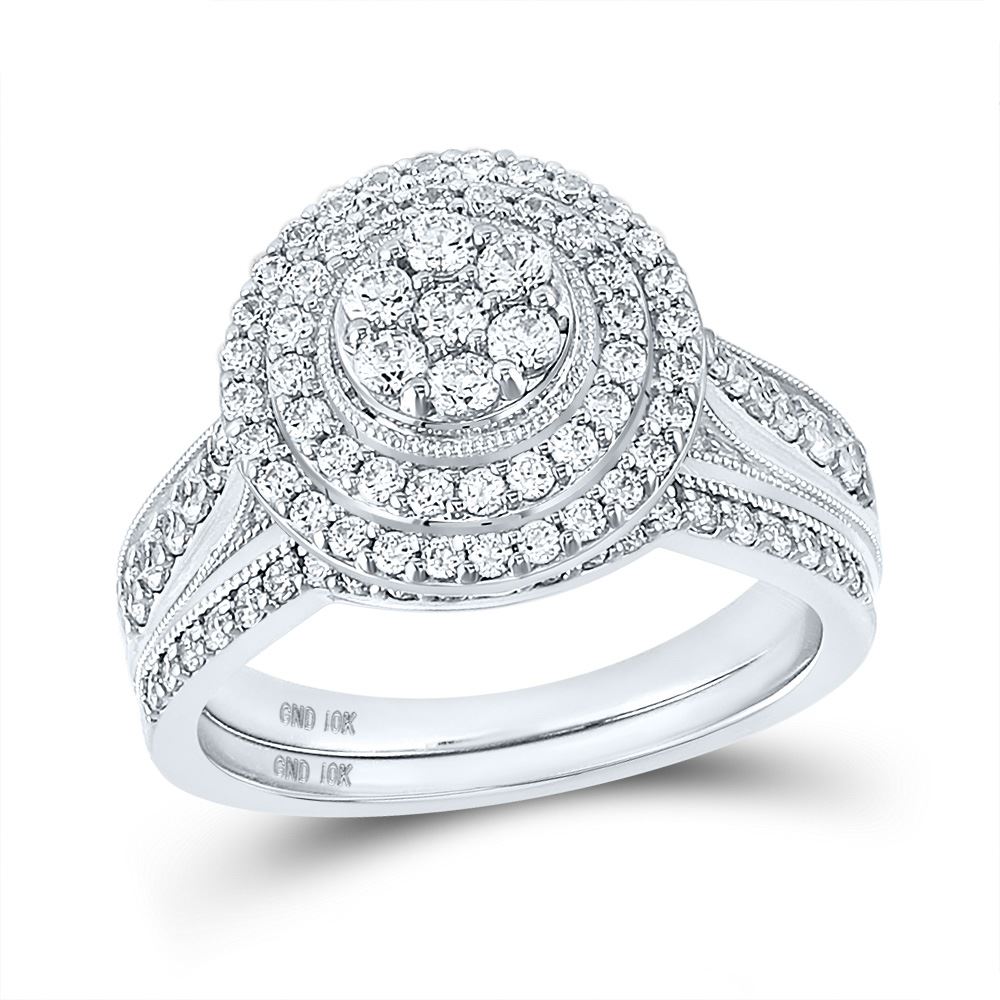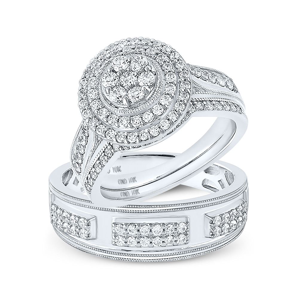 10kt White Gold His Hers Round Diamond Cluster Matching Wedding Set 1-1/4 Cttw.