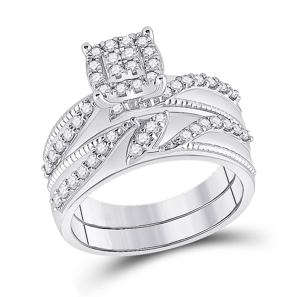10kt White Gold His Hers Round Diamond Cluster Matching Wedding Set 1 Cttw.