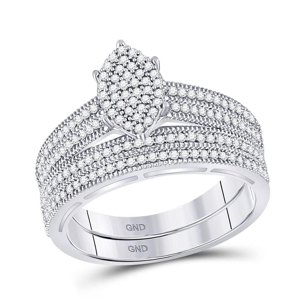 10kt White Gold His Hers Round Diamond Cluster Matching Wedding Set 3/4 Cttw.