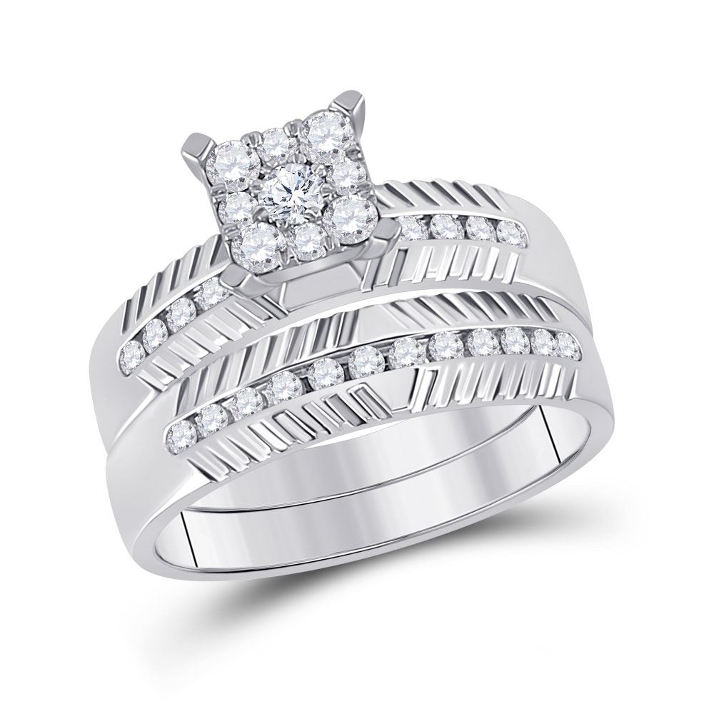 Diamond Cluster Matching Wedding Set 3/4 Cttw 14KT White Gold