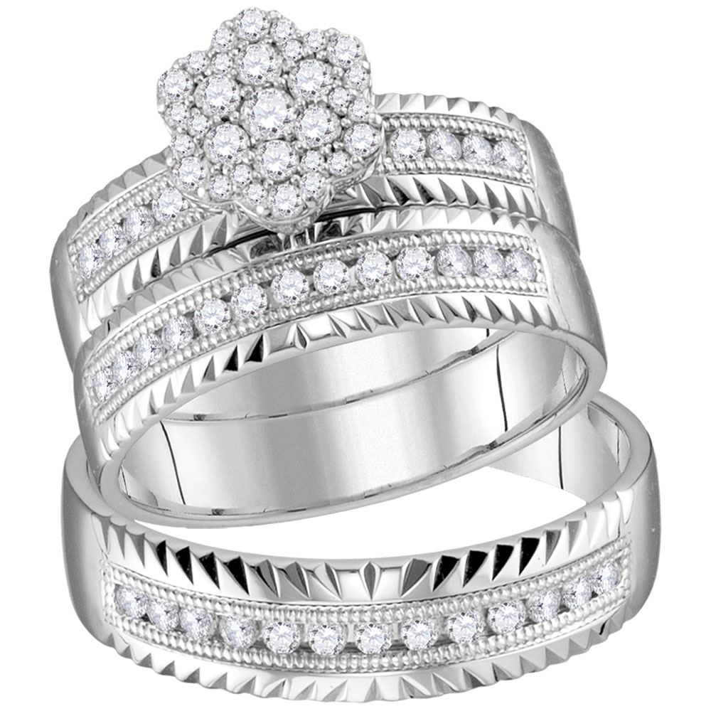 Diamond Cluster Matching Wedding Set 3/4 Cttw 14KT White Gold