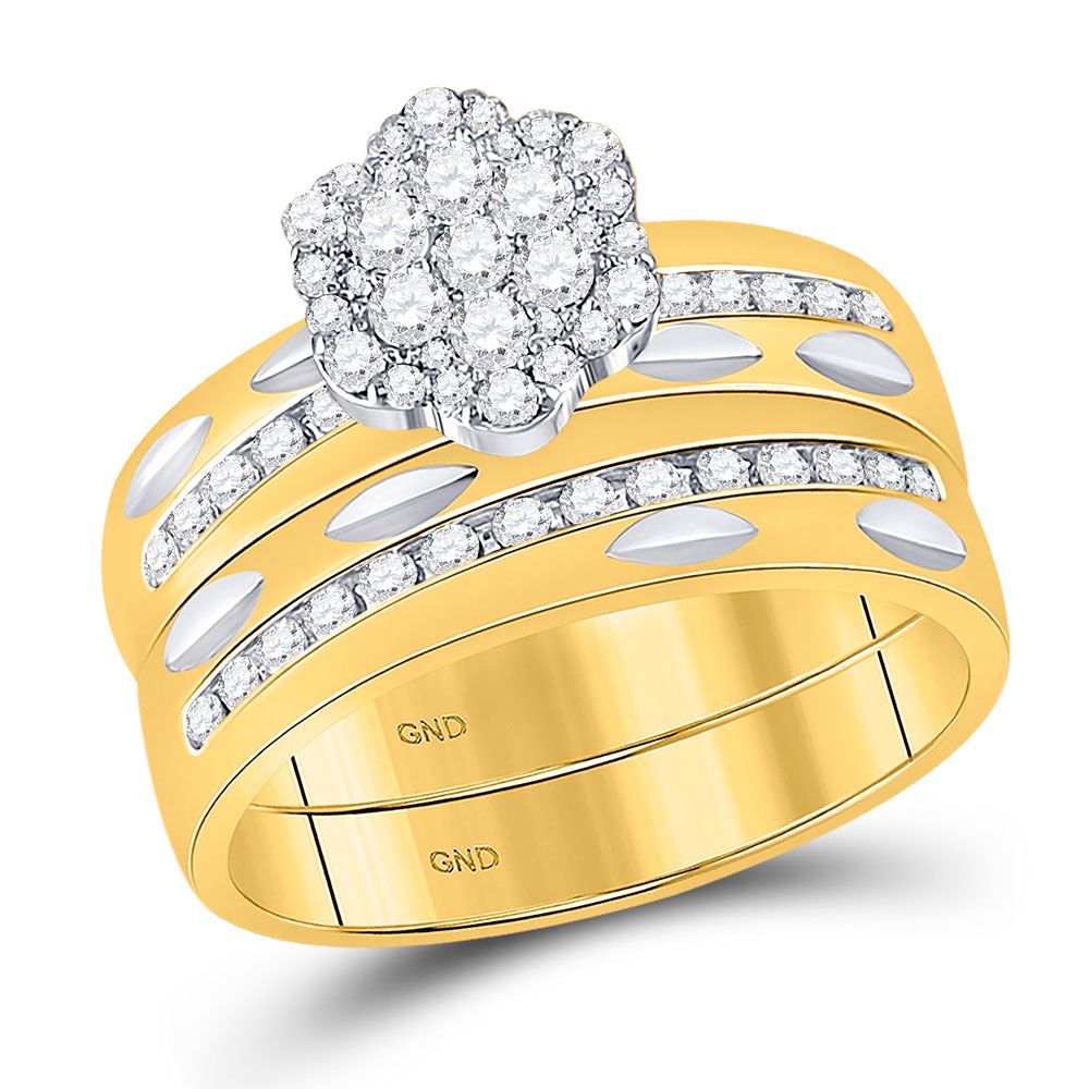 14kt Yellow Gold His Hers Round Diamond Cluster Matching Wedding Set 3/4 Cttw.