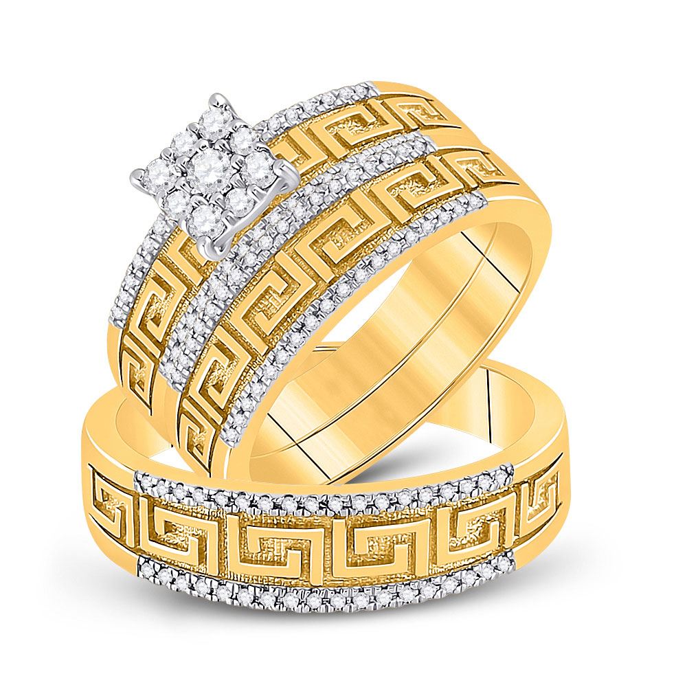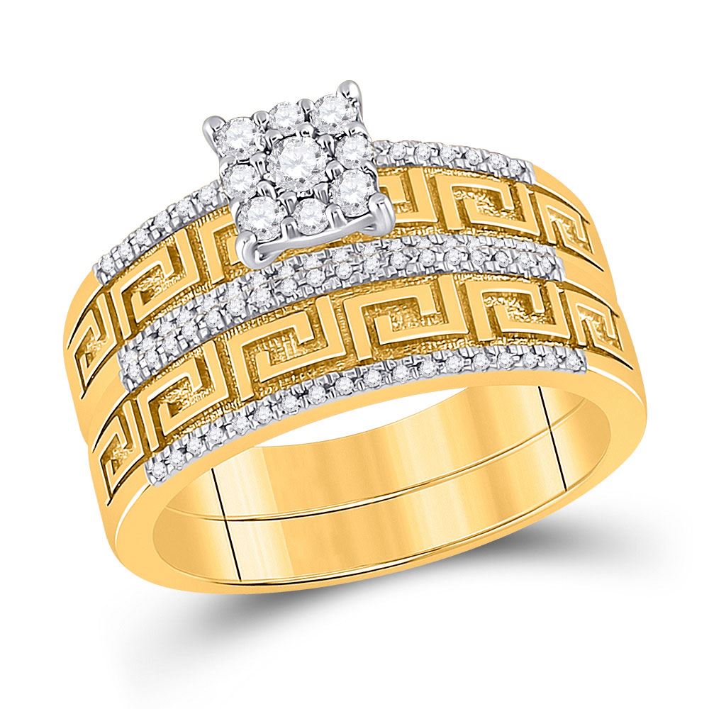 10kt Yellow Gold His Hers Round Diamond Cluster Matching Wedding Set 3/8 Cttw.