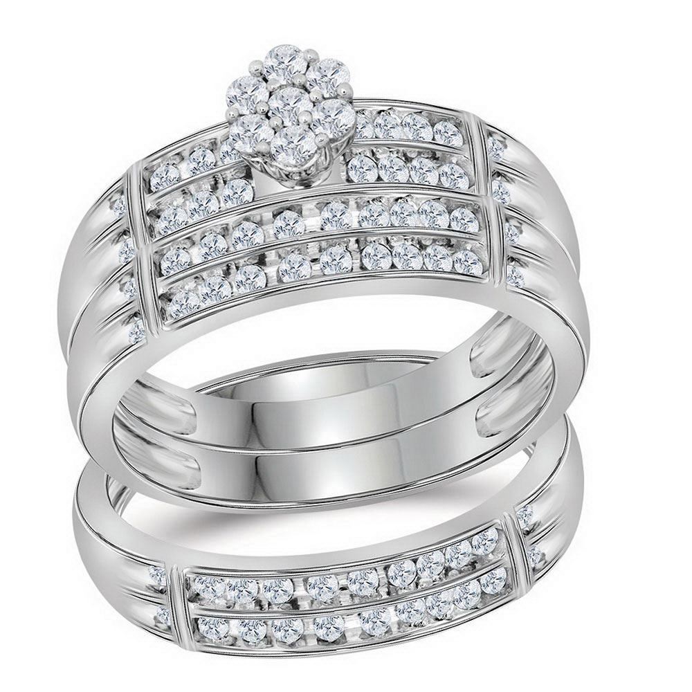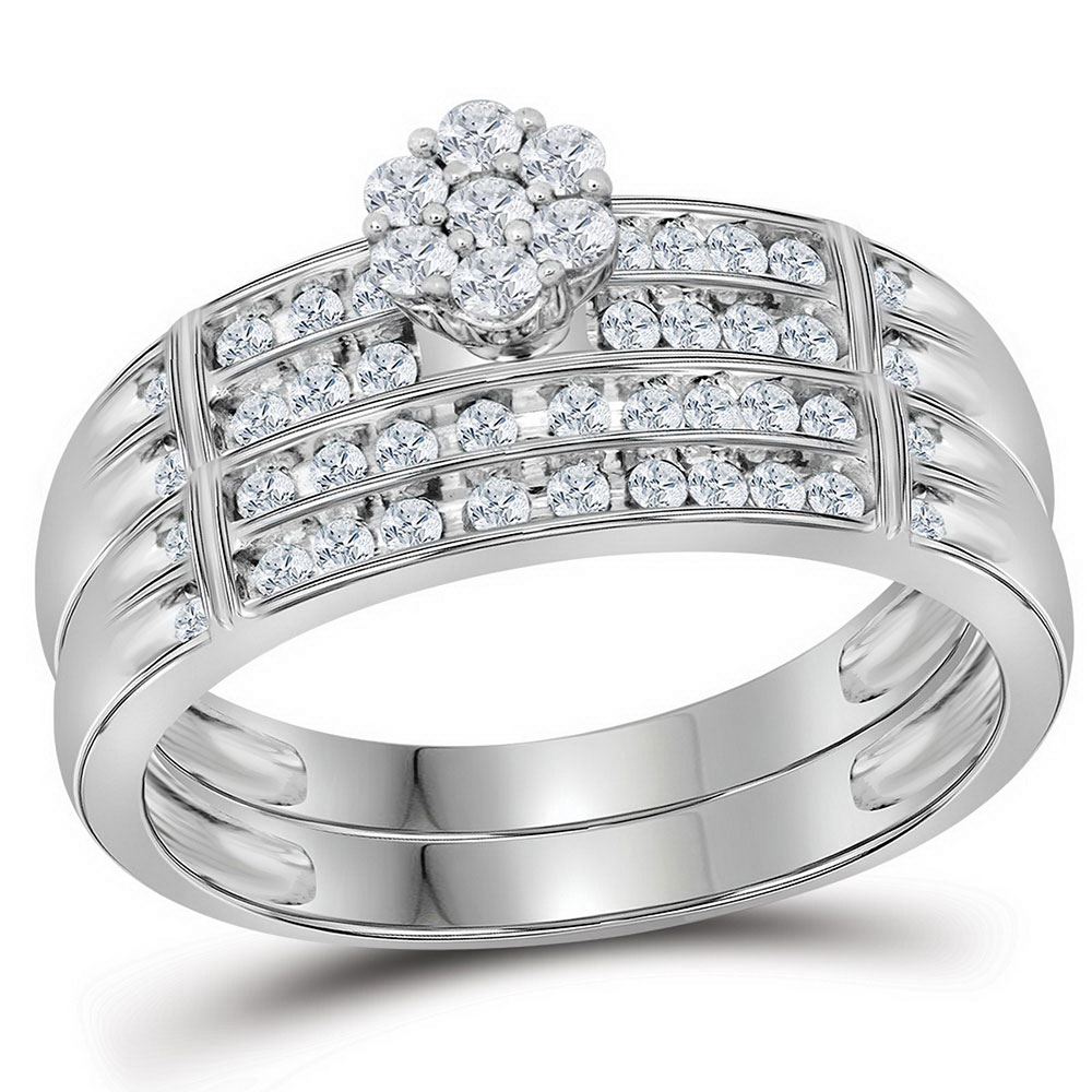 10kt White Gold His Hers Round Diamond Cluster Matching Wedding Set 5/8 Cttw.