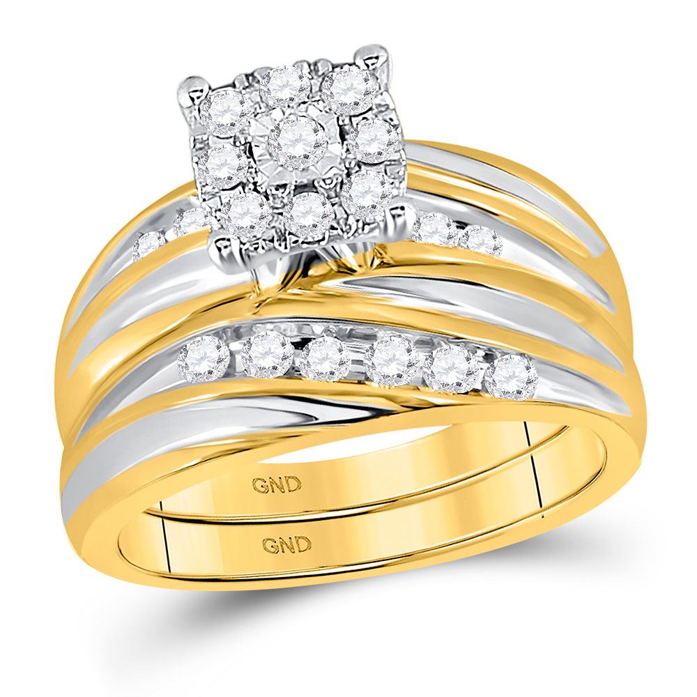 14kt Yellow Gold His Hers Round Diamond Cluster Matching Wedding Set 5/8 Cttw.