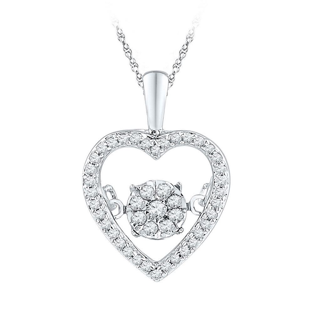 REF-20Y0X - SKU: GD97074 ---- Diamond Cluster Moving Twinkle Heart Pendant 1/5 Cttw 10kt White Gold