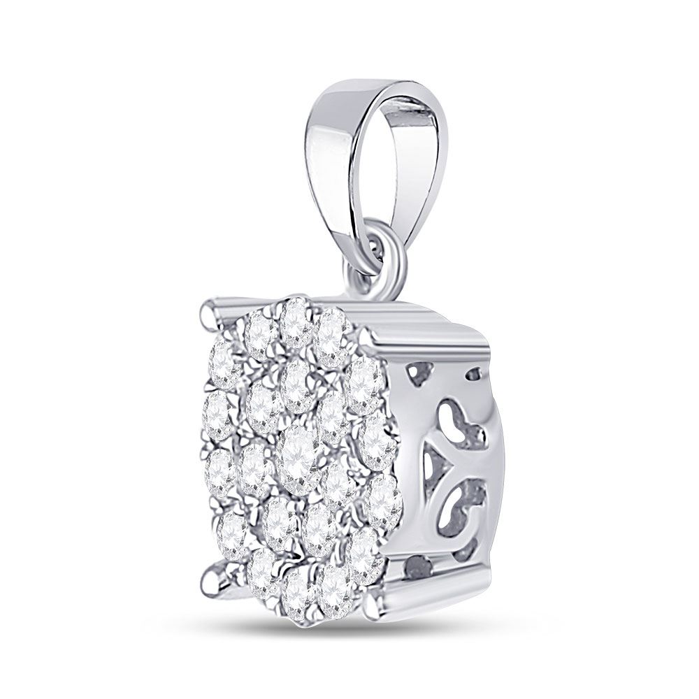 10kt White Gold Womens Round Diamond Cluster Pendant 1/2 Cttw